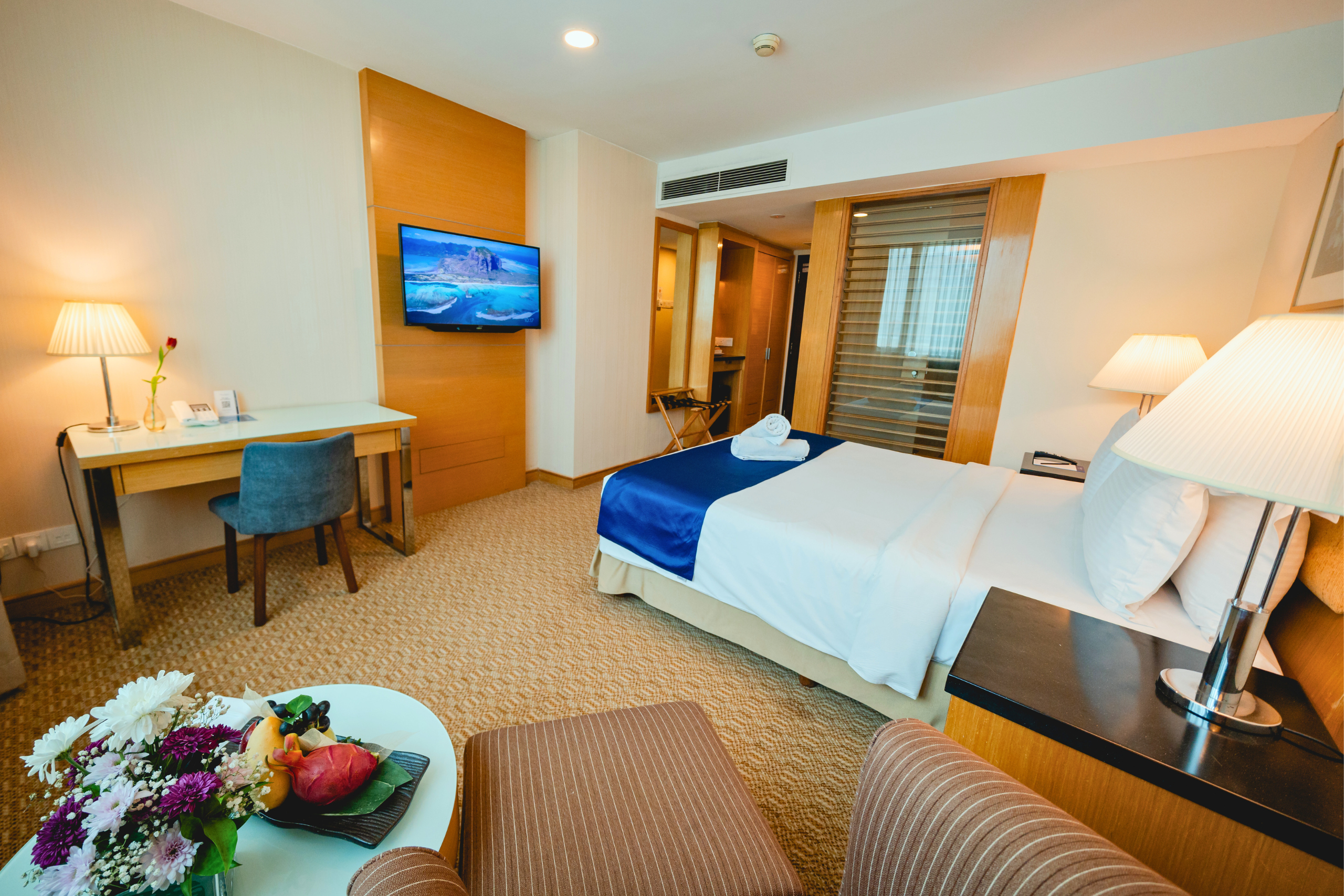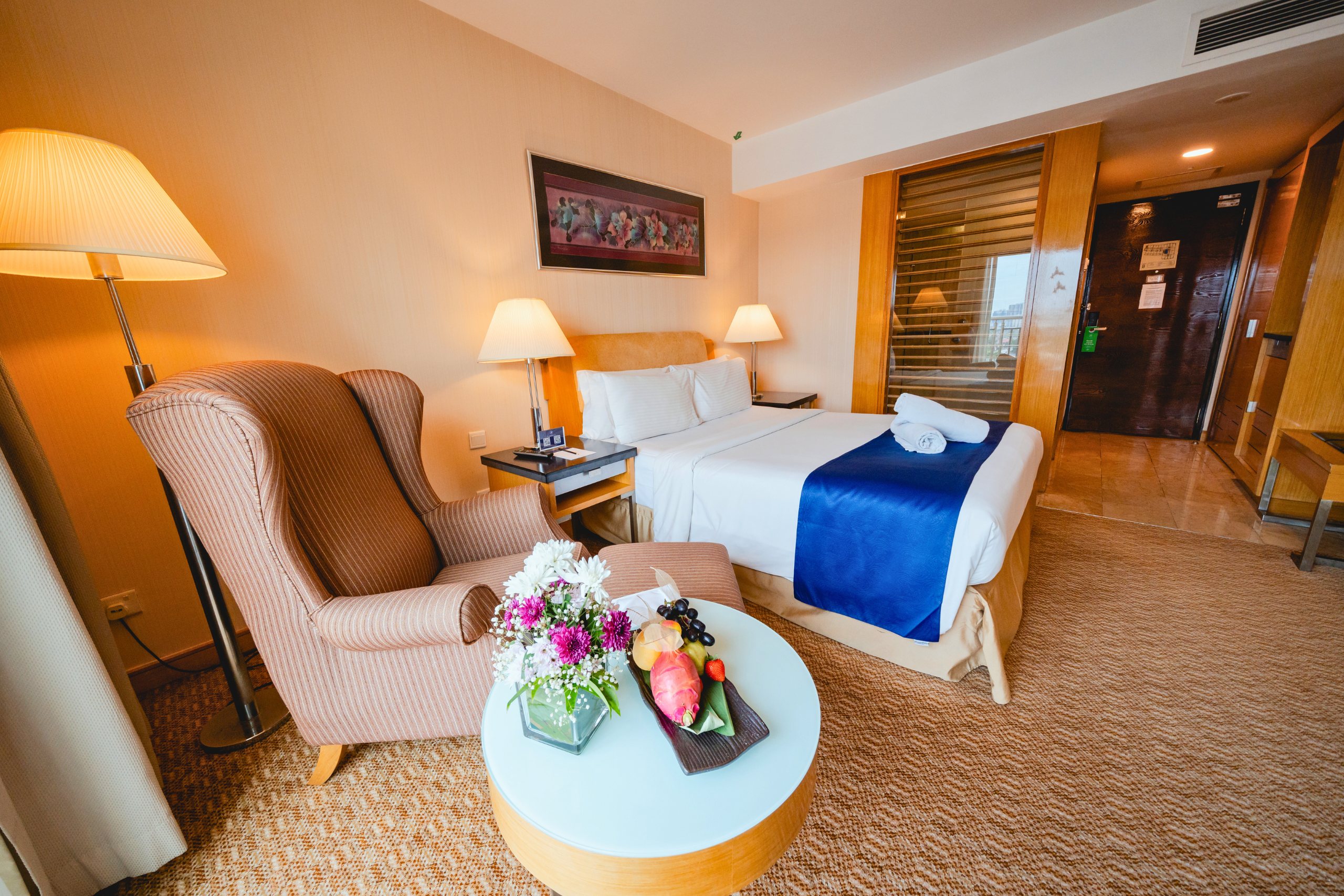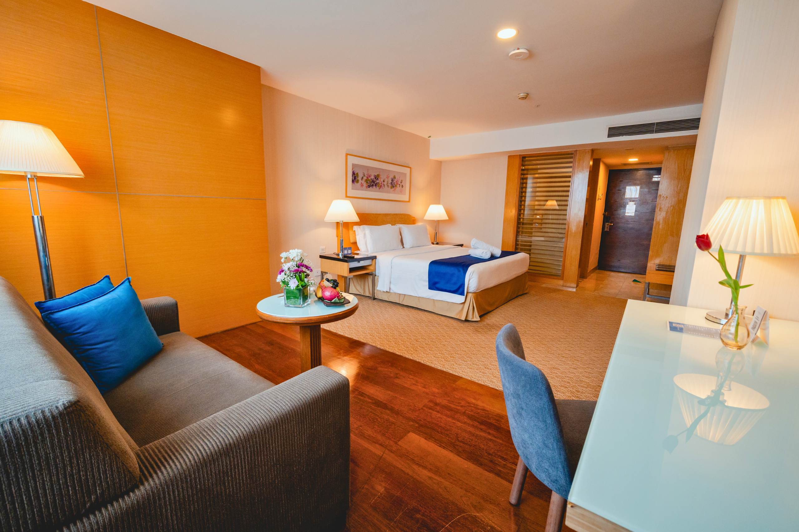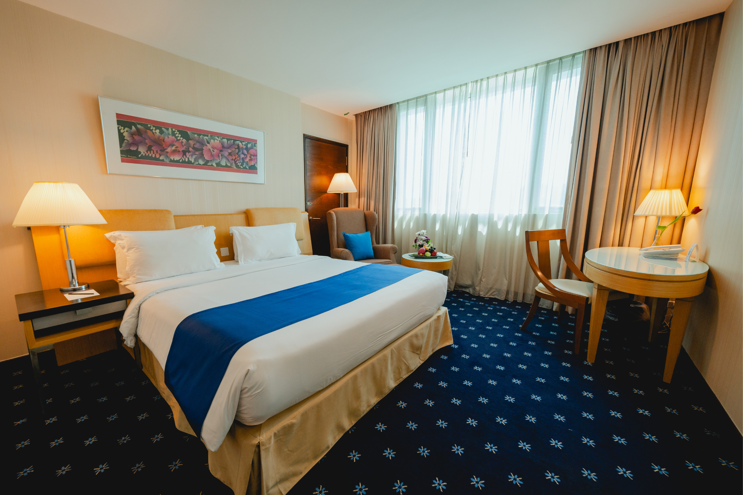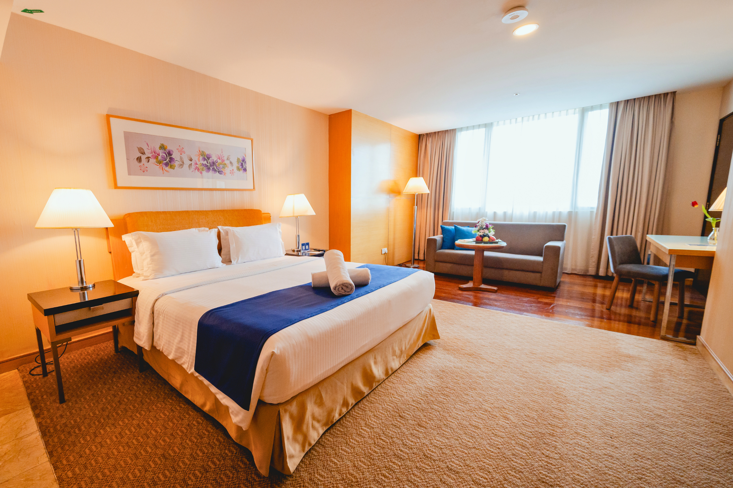 Royale Chulan The Curve offers 142 spacious guestrooms in six distinct types, each thoughtfully designed with contemporary wood furnishings and soft lighting to create a calming retreat in Petaling Jaya.
