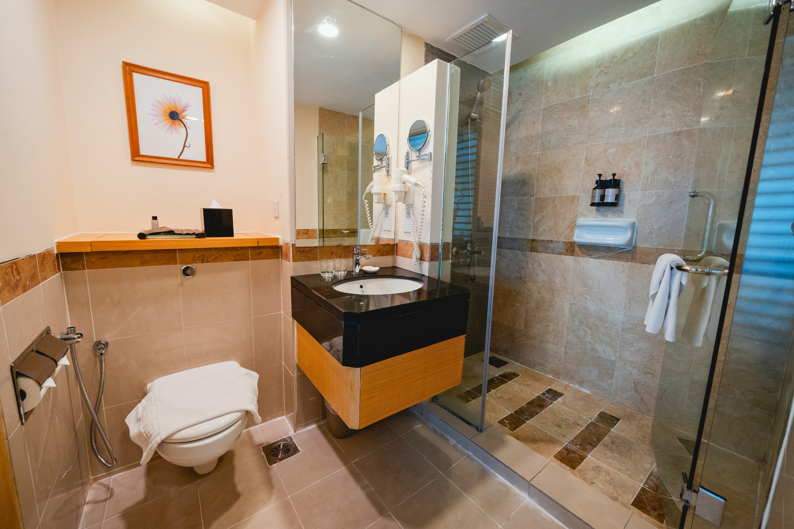 26 sq m room accommodating 2 adults and 1 child, furnished with a cozy Queen Bed. Capacity is based on existing bedding, with the option of an extra bed subject to availability and additional charges. Well-equipped with essential amenities to ensure a comfortable stay.